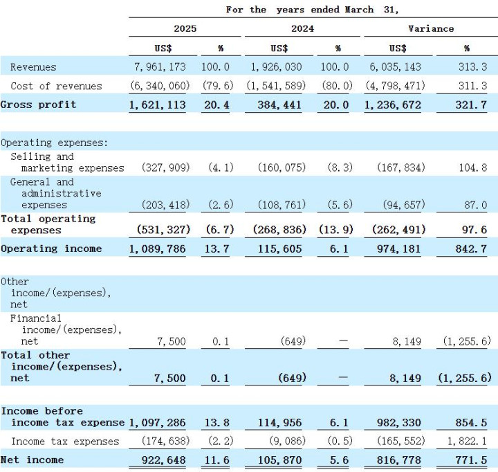 2024至2025财年(截至3月31日),Feline Culture营收分别为193万美元、796万美元,相应的净利润分别为11万美元、92万美元。